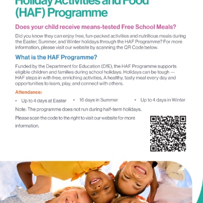 What is the HAF Programme? Funded by the Department for Education (DfE), the HAF Programme supports eligible children and families during school holidays. Holidays can be tough — HAF steps in with free, enriching activities, A healthy, tasty meal every day and opportunities to learn, play...
